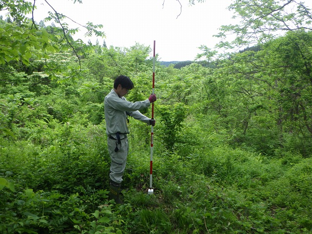 私は、都市計画課に配属され、市街地での測量だけかと思っていたのですが、大自然の中での測量もあり、驚きを感じました。